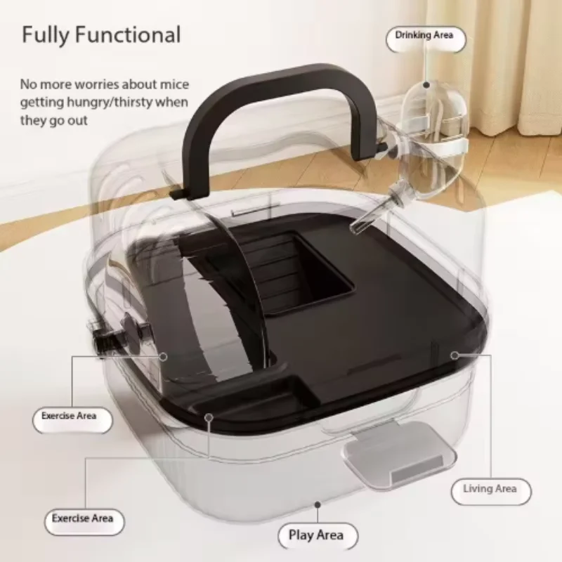 This Large Capacity Cage and Travel Carrier provides a safe and comfortable space for your small pets on the go. Its translucent design lets you easily monitor your pet while reducing stress. The breathable ventilation system ensures fresh airflow at all times. A built-in water bottle keeps your hamster or small rodent hydrated during travel. The spacious interior allows pets to move freely and rest comfortably. Durable construction ensures long-lasting use and resists chewing. A secure locking door prevents escapes while remaining easy to open for cleaning. Lightweight and portable, it’s ideal for car trips, vet visits, or temporary housing. The smooth inner surface helps maintain hygiene and is simple to wipe clean. This versatile carrier doubles as a small pet habitat or travel cage for maximum convenience.