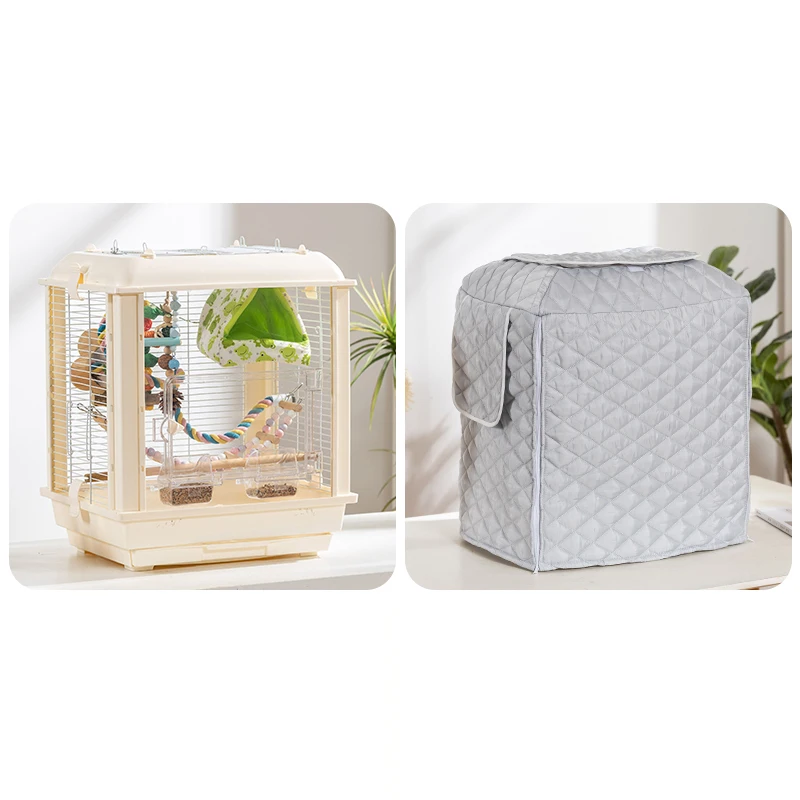 This Winter Quilted Bird Cage Cover provides superior warmth and protection for parrots and other small birds during cold weather. Its thick cotton quilted design offers excellent insulation to keep your pet comfortable. The rainproof outer layer shields the cage from moisture and drafts. Soft inner lining helps maintain a stable and cozy temperature inside the cage. The breathable structure prevents overheating while still blocking cold air. Its canopy-style fit ensures full coverage without restricting airflow. Easy-to-use closures make setup and removal quick and convenient. The cover helps reduce stress by darkening the cage for restful sleep. Durable stitching ensures long-lasting performance through winter seasons. Give your bird reliable warmth and comfort with this premium protective cage cover.